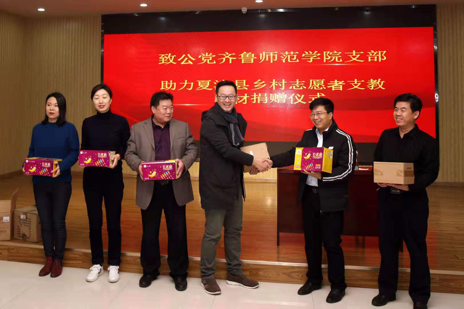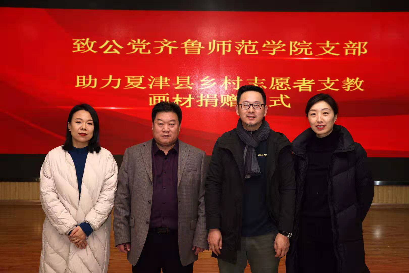 12月14日,致公党齐鲁师范学院支部助力夏津乡村教育志愿者支教画材捐赠仪式举行。致公党齐鲁师范学院支部主委杨三军和委员王戈等支部成员亲赴夏津县实验小学现场参加了捐赠活动,齐鲁师范学院机关党委书记宋新刚、夏津县教育局局长郭长利和副局长周忠礼等有关领导同志出席活动。双方在热烈、友好的气氛中完成了画材捐赠对接仪式并合影留念。