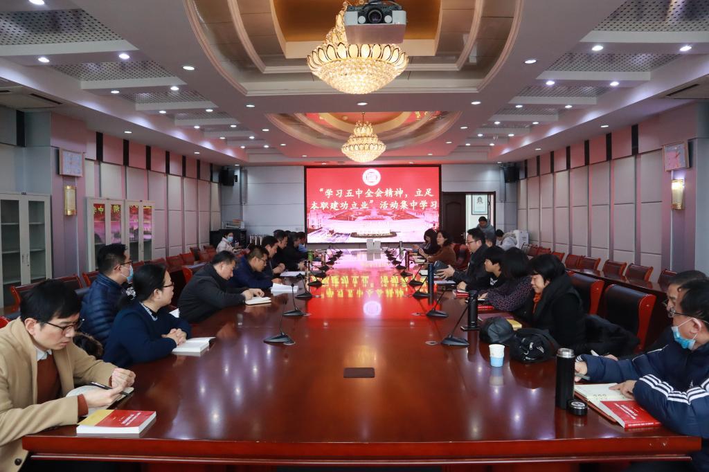 党委统战部部长陈光军领学了《中国共产党第十九届中央委员会第五次全体会议公报》,摘要学习了《中共中央关于制定国民经济和社会发展第十四个五年规划和二〇三五年远景目标的建议》,并现场观看了党的十九届五中全会召开和“十三五”成就的相关视频。