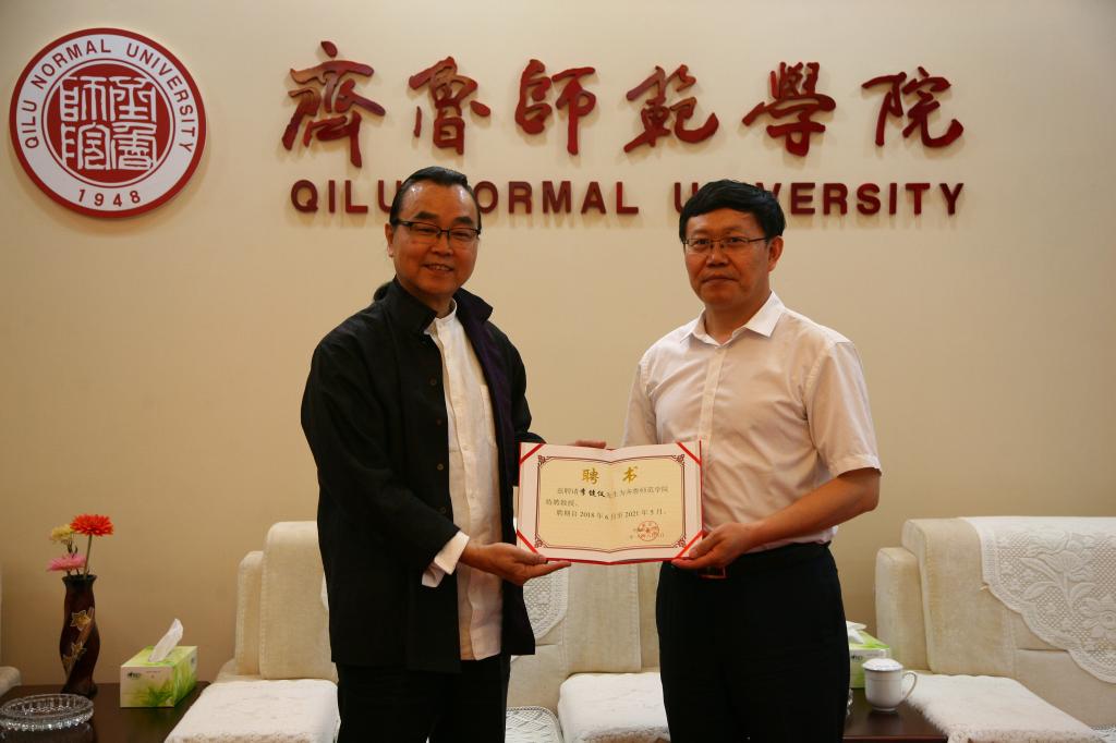 林松柏充分肯定了李健仪教授在艺术上的卓越成就,并表达了希望李健仪教授来我校美术学院进行学术交流、指导的殷切愿望,李健仪欣然表示同意,并接受了我校颁发的客座教授聘书。